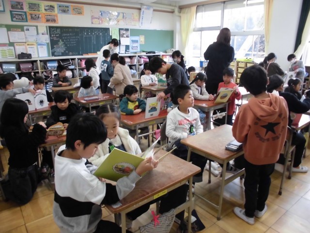 国語の「おすすめの1さつを決めよう」の学習で、1年生がすきになってくれるような本はどんな本なのかを話し合い、おすすめの1冊を決めました。今日は実際に1年生に読み聞かせをしました。優しく声を掛けたり一生懸命に読んだりする姿に、3年生の成長を感じました。