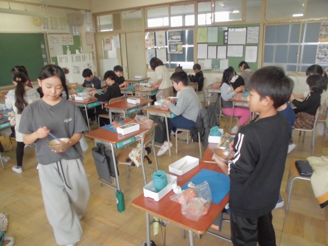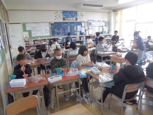 12月8日 4年生 図工「立ち上がれねん土」:オーカークレイで立体作品が完成!