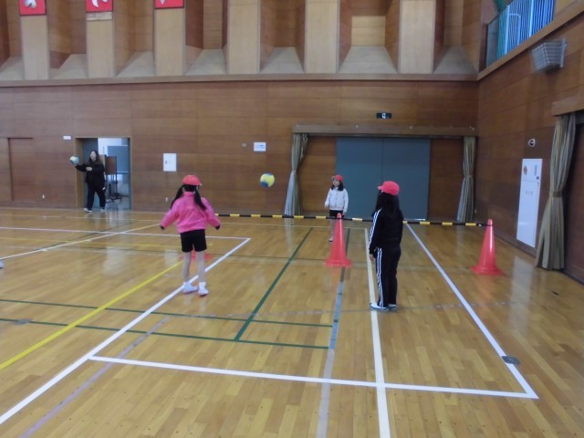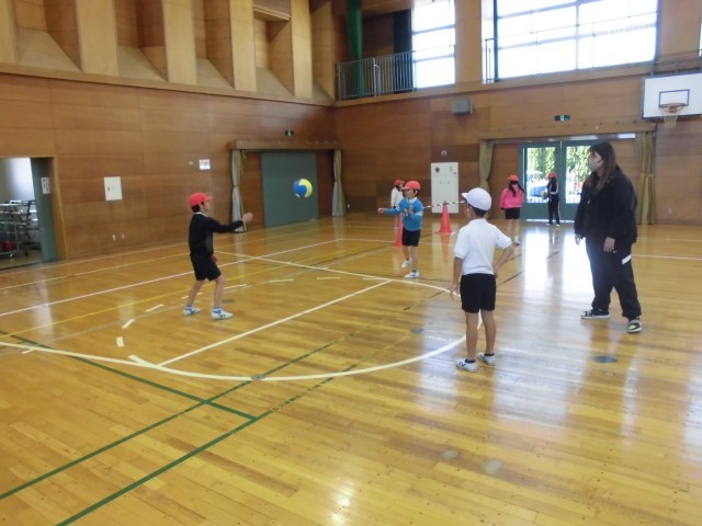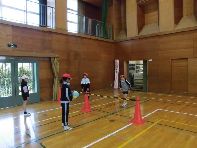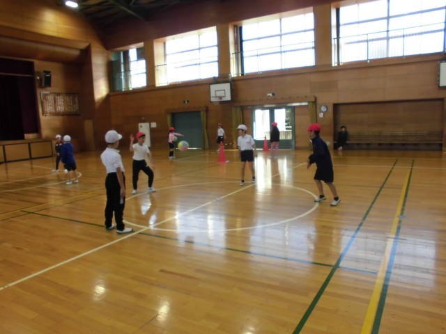 プレルボールは、大きなボールを使い、拳や腕で床に打ち付けてバウンドさせ、相手コートに返球するニュースポーツです。ボールを直接キャッチするものではなく、ワンバウンドで一呼吸おいてから操作できるため、子どもたちは怖がることなく簡単にボールを扱えます。