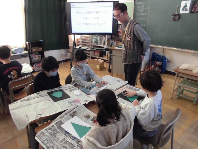 12月17日 3年生 せんい産業について、知ろう、ふれよう、やってみよう