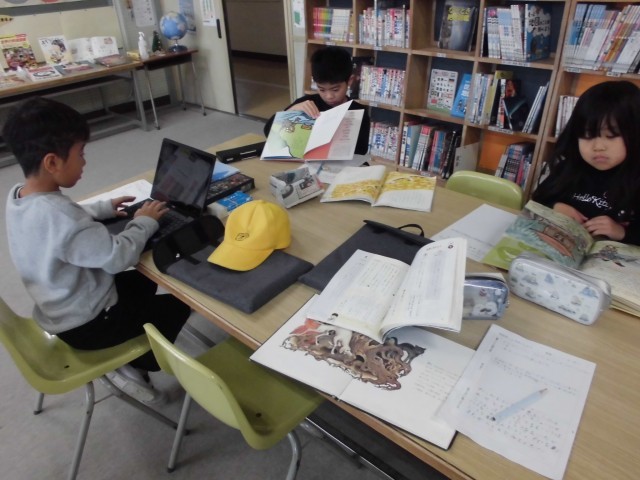 選んだ本は魅力を伝える紹介文を作成します。下書きが完成した子から、タブレットのドキュメントに打ち込み、提出していきます。デジタルの力を活用し、互いの紹介文を読み合う時間が今から楽しみです
