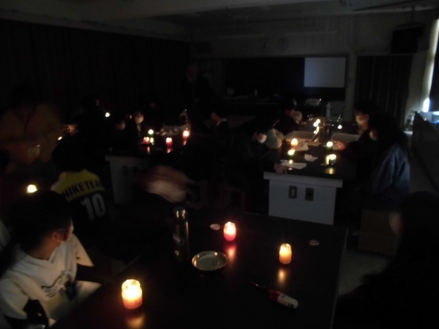 最後にキャンドルに火をともし、クリスマス気分を味わいました。