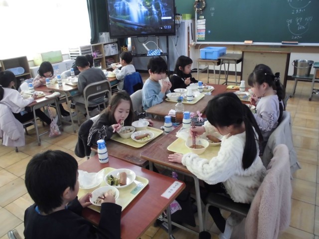 お昼の放送ではイントロクイズが流れ、「泳げたいやきくん」や「だんご3兄弟」など懐かしい曲に「今の子供にわかるかな?」と思いましたが、意外にも正解が出るので驚きました。世代を超えた名曲の力に感心した、楽しい給食の時間となりました。