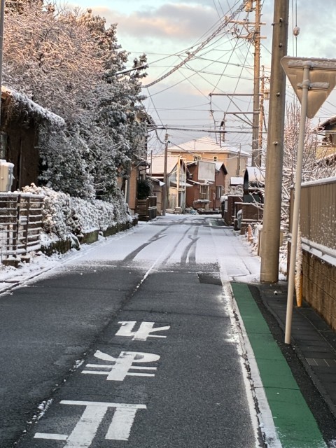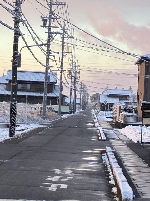 積雪はそんなにありませんが、昨夜の降雪で場所によっては滑りやすくなっているところもあります。学校周辺は除雪しましたが、転ばないように気を付けて登校してください。