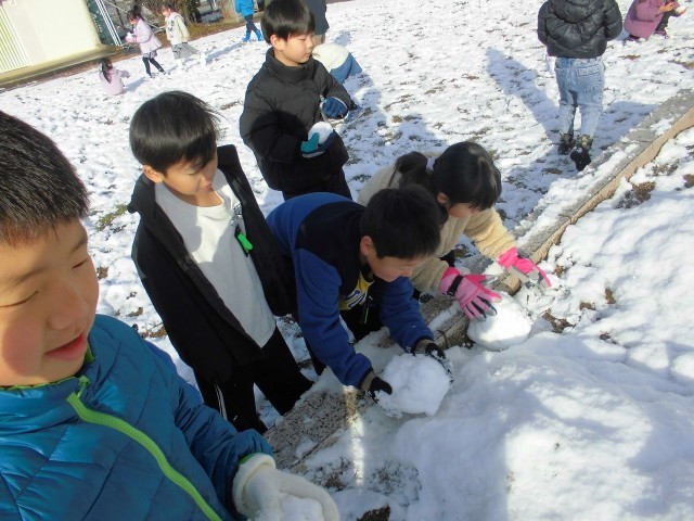 真っ白な雪が降り積もり、子どもたちは朝から大喜び!今日は生活科の学習として、みんなで「雪遊び」を行いました。