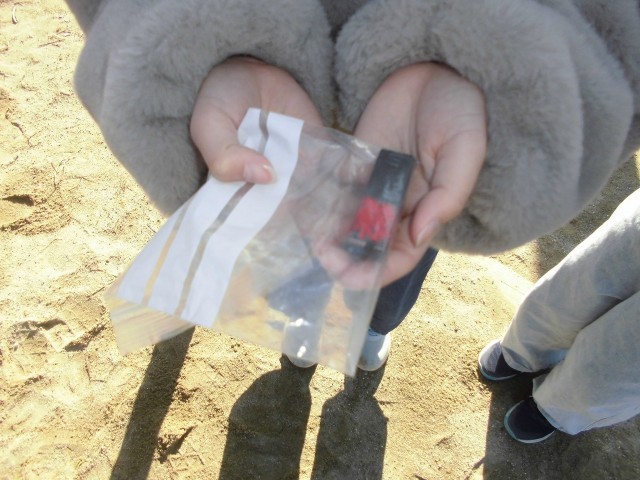 また、最後の実験として「砂鉄」を探しにいきました。砂場の砂の中にけっこうあったことに、驚いていました。