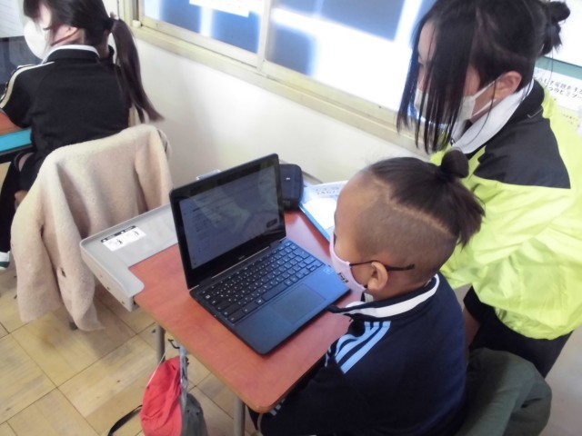 1週間ほど授業が止まっていたため、今日の算数は復習からスタート。AI教材「Qubena(キュビナ)」を使って各自のペースでこれまでの学習を振り返ったり、先に進んでいた子が友達に解き方を教えたりと、みんなで支え合いながら遅れを取り戻そうと頑張っていました。