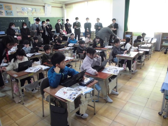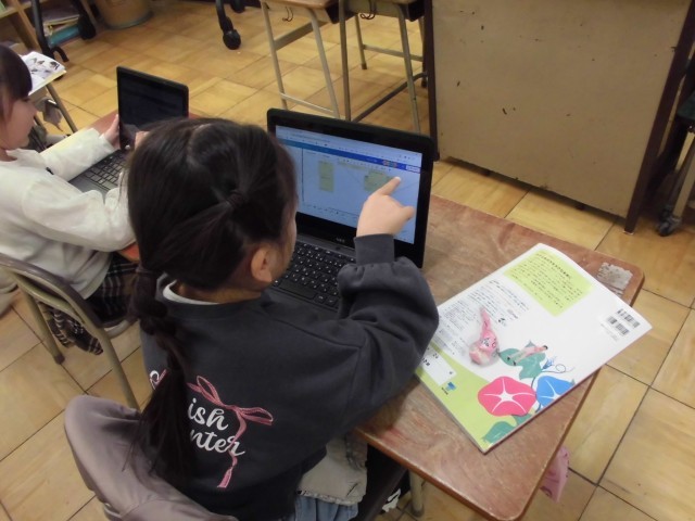 生活科では「もうすぐ2年生」の学習に取り組んでいます 。子どもたちはタブレットを使い、この1年間で「できるようになったこと」を付箋に書き出しました 。友達と画面を見せ合いながら「すごいね!」と認め合う姿も見られ、心身共に大きな成長を感じます 。自分の成長に自信を持ち、感謝の気持ちを胸に、立派な2年生への階段を歩んでいます 。