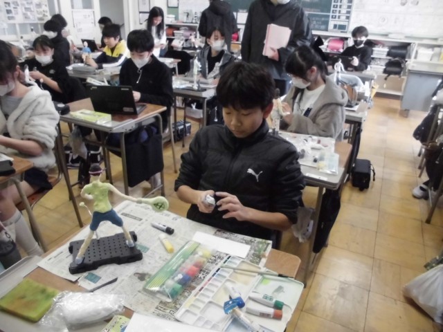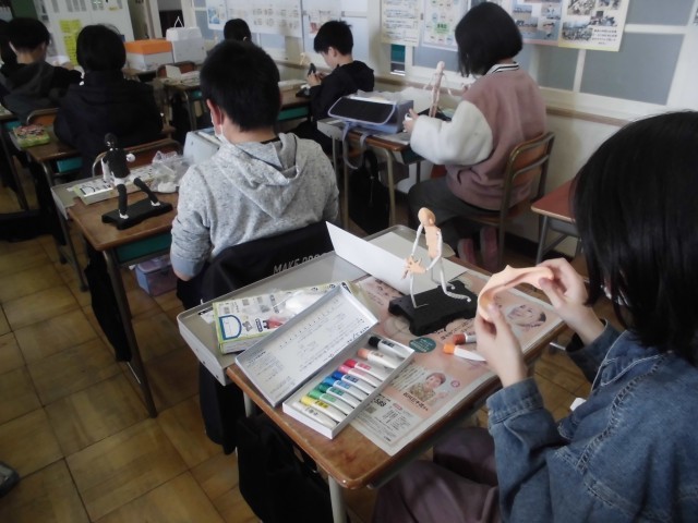 今日、6年生の図工では、「未来のわたし」をつくっています。