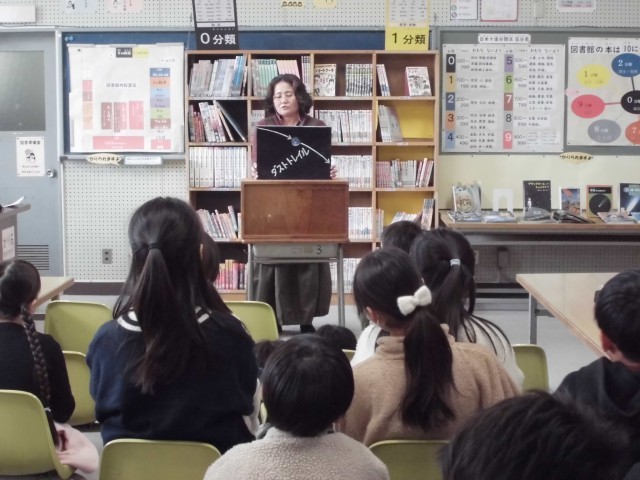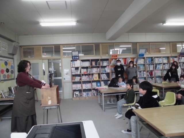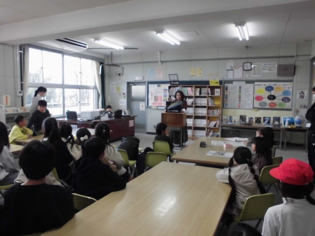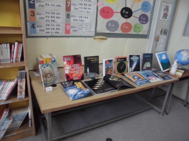 演目は、手作りの紙芝居「すいせいとりゅうせいぐん」です。司書さんが図書室の本をたくさん調べて、子供たちのために絵から描き上げた力作です。低学年には少し難しい内容もありましたが、皆しっかり聞き入り、「流れ星が燃え尽きないとどうなる?」との問いに「隕石!」と答える場面も。宇宙への興味が広がる、素敵な時間となりました。星に関する本のコーナーが作世つされているので、興味を持った子は借りて読むといいですね。