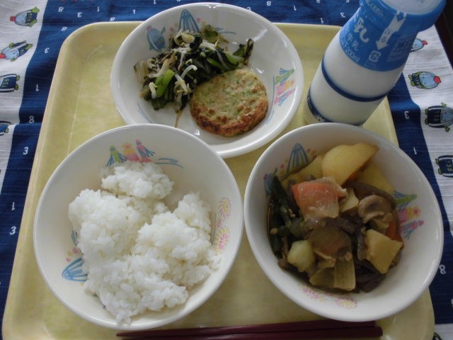 牛乳・ご飯・野菜はんぺん・いそか和え・肉じゃが