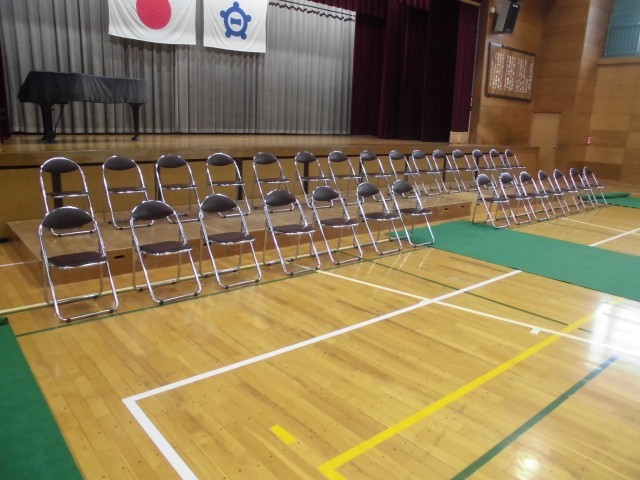 卒業生の座る椅子を出し、まっすぐになるよう並べました。