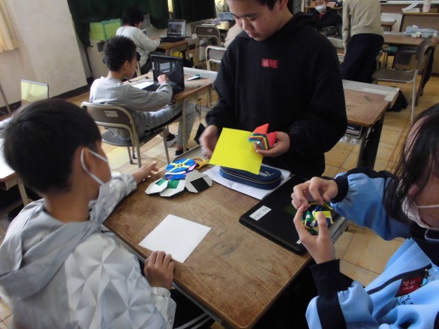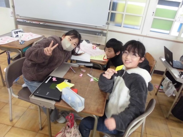 明日に控えた「6年生を送る会」に向け、5年生が準備のラストスパートに入っています。全校クイズの景品作りでは、タブレットで折り紙の動画を熱心に調べ、低学年も喜ぶように・・・と相手を思い浮かべて制作していました。