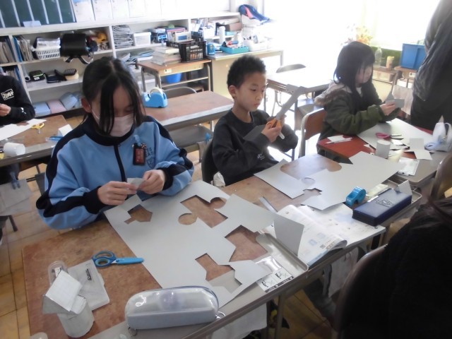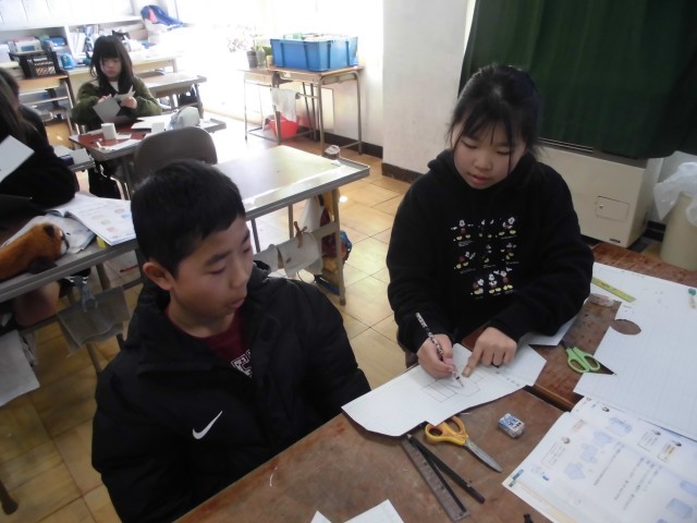 今日の算数の授業は、角柱と円柱の展開図をかいて、立体を作ってみました。