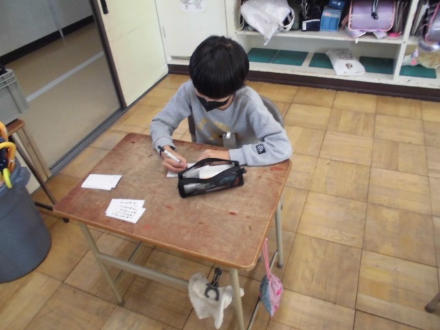 この一年間を締めくくる「ありがとうカード」作りに取り組んでいます。もうすぐ全員分が書けそうな子が出てきました。