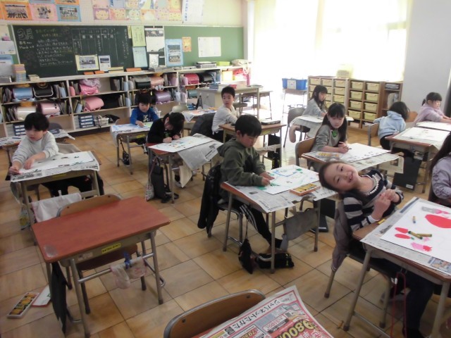 図工の授業で、子供たちが「線の冒険」に挑戦しました。