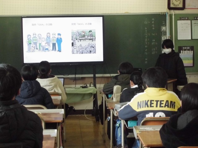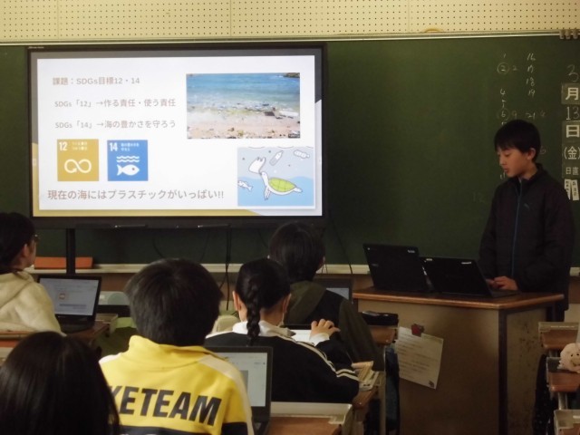 子どもたちは、自分が関心を持った国際的な課題について、スライドを駆使して堂々と発表。写真やイラスト、楽しいクイズを盛り込むなど、「どうすれば相手に伝わるか」を一生懸命に考えて工夫していました。