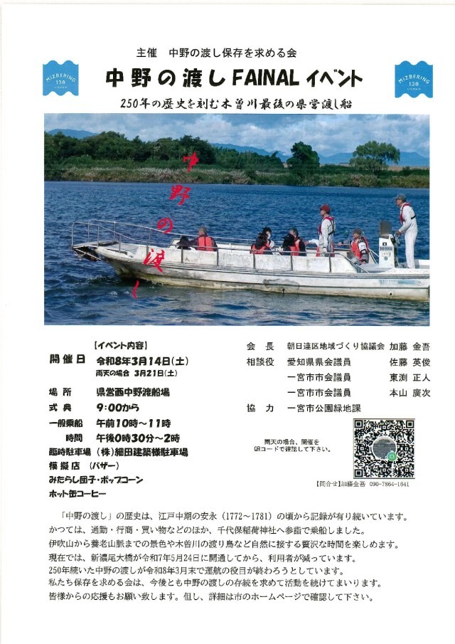 校区が誇る歴史の1ページ、「中野の渡し」が3月25日をもって県道としての役割を終えます。本日開催中のファイナルイベントには、本校の子供たちも元気な顔を見せてくれました。