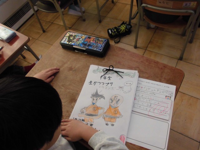 生活科の授業で、1年間の思い出が詰まったカードを1冊の本にまとめました。