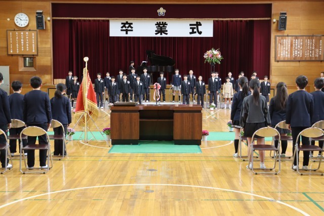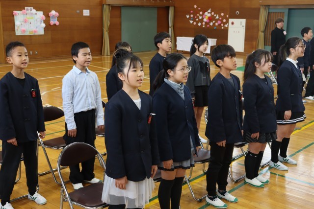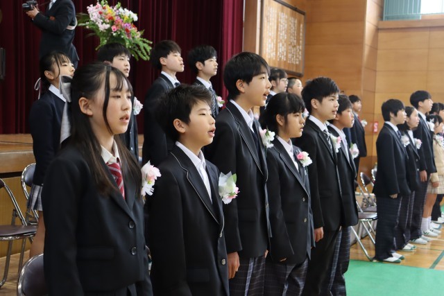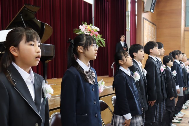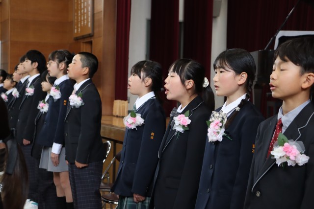 最後には、在校生代表の5年生も加わり、体育館いっぱいに美しい合唱が響き渡りました。卒業生から5年生へと、学校の伝統というバトンがしっかりと手渡された、温かく感動的なひとときとなりました。