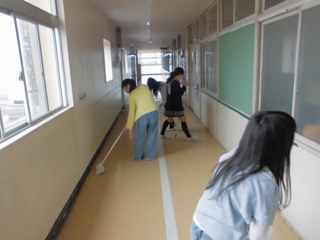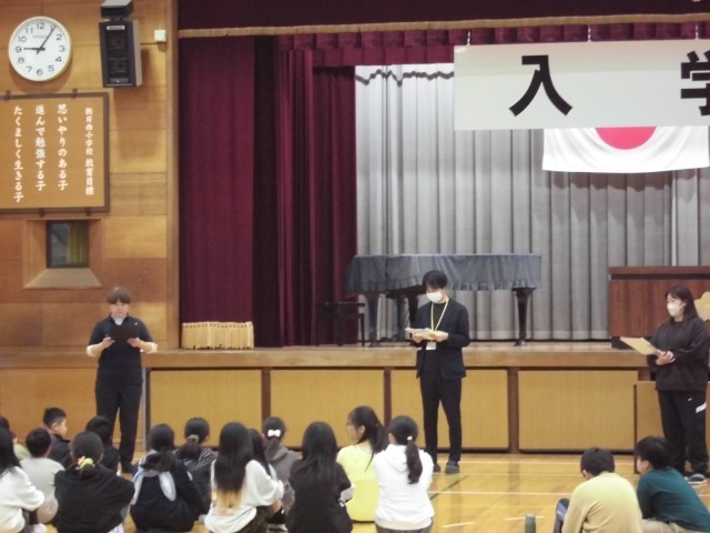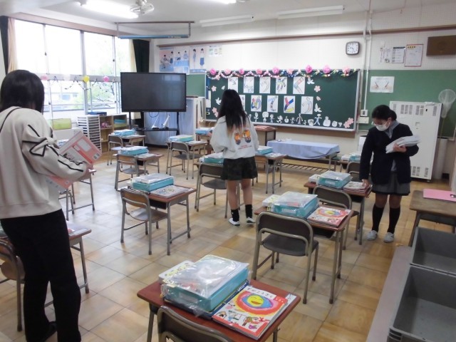 会場の椅子を真っ直ぐに並べ、1年生が通る正門前、廊下や昇降口をピカピカに整える姿は、まさに頼もしい「学校の顔」そのもの。教室では、教科書を丁寧に机へ並べ、新入生を温かく迎えようという優しさがあふれていました。