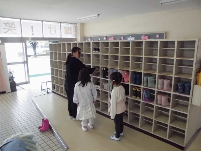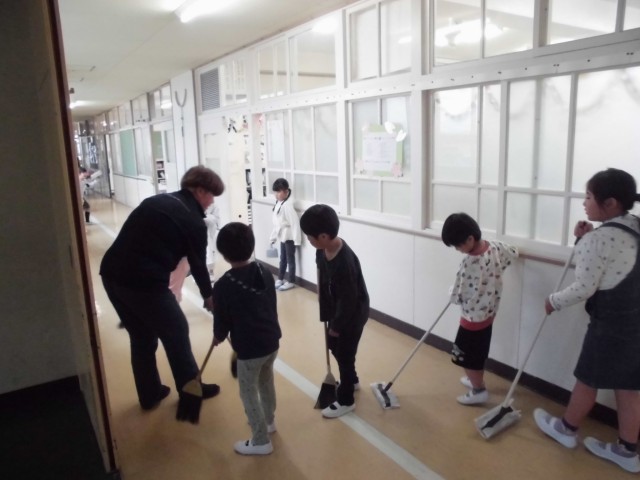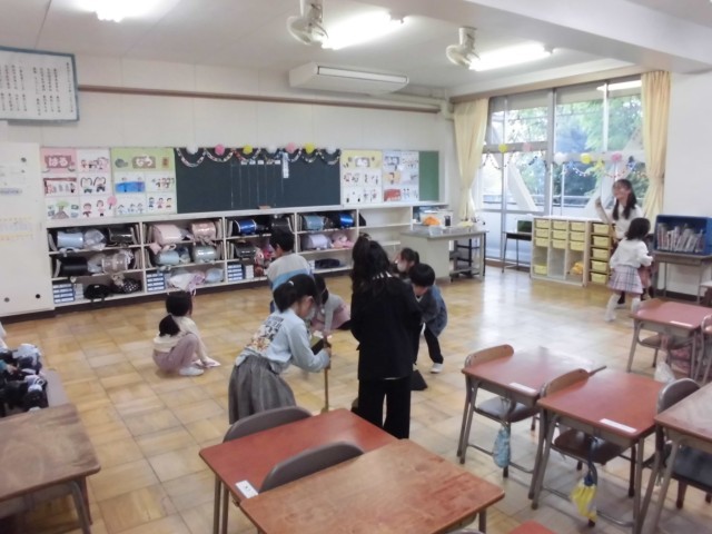 また、お掃除の仕方も教わりました。6年生のお兄さん、お姉さんに優しく手伝ってもらいながら、教室や靴箱を一生懸命きれいにしています。一つずつ、できることを増やしていきます。