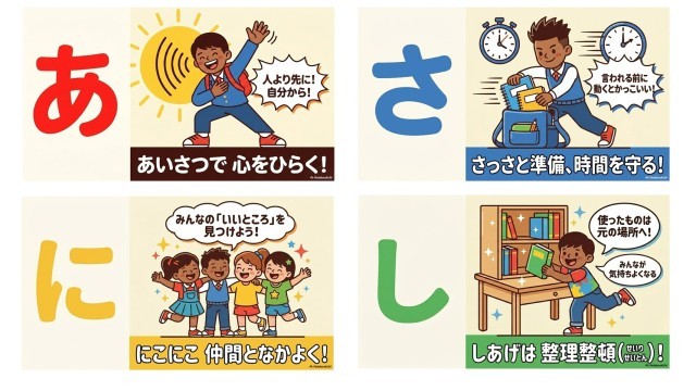 の「あさにし」の4つのあたりまえを大切にしていきましょう。