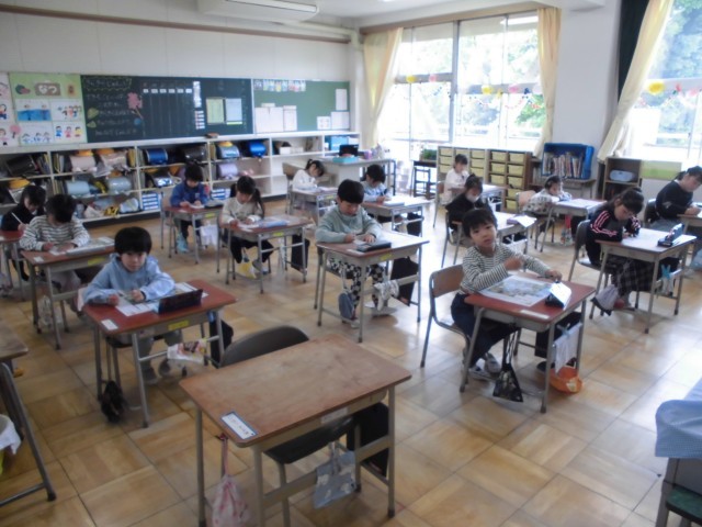今日は全校一斉に国語に取り組みました。担任の先生が用意したプリントやAIドリルに向かう子供たちの表情は真剣そのもの。校内が心地よい静寂に包まれます。