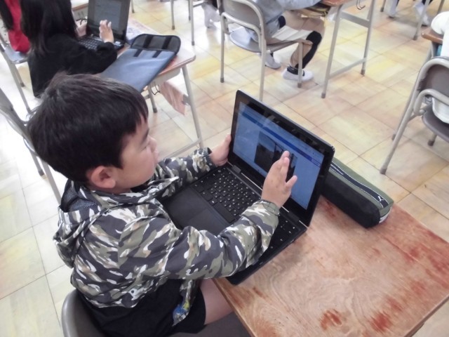 今の時代、頭の中のイメージだけで描くのは少し難しいことかもしれません。そこで今回は、クロームブックで自分の姿をパシャリ!写真を拡大したり切り取ったりして、「どんな構図にしようかな?」とじっくり作戦を立てました。