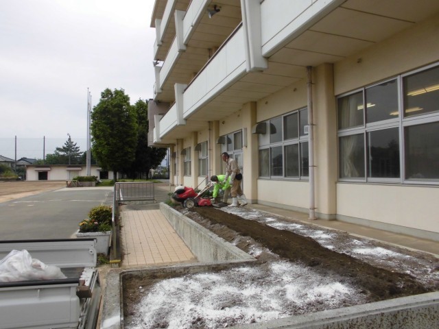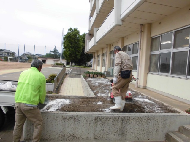 夏の花を植えるための土作りや丁寧な除草など、職員だけでは行き届かない場所を愛情込めて手入れしていただき、感謝の気持ちでいっぱいです。おかげさまで、子供たちも美しい環境の中で元気に過ごせます。地域の皆様の温かい支えが、学校の大きな力になっています。