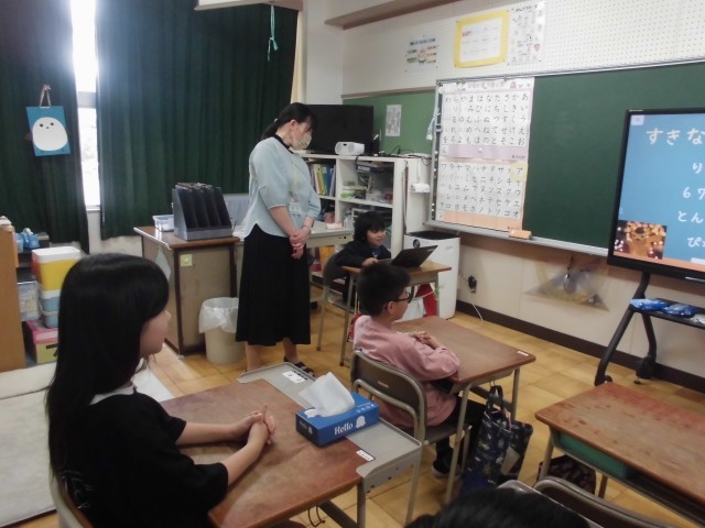 授業参観へのご来校、ありがとうございました。今回の「あさひ」の授業では、タブレットを使いこなした自己紹介を行いました。