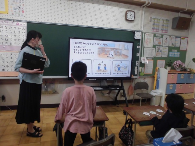低学年の子も、自分で選んだ画像をスライドに貼り付け、「好きなもの・苦手なもの」を一生懸命に発表する姿が見られました。いつも一緒に過ごしている仲間同士ですが、意外な共通点や新しい一面を発見し、お互いの絆がより深まる素敵なひとときとなりました。子どもたちの成長を、頼もしく感じています。