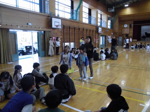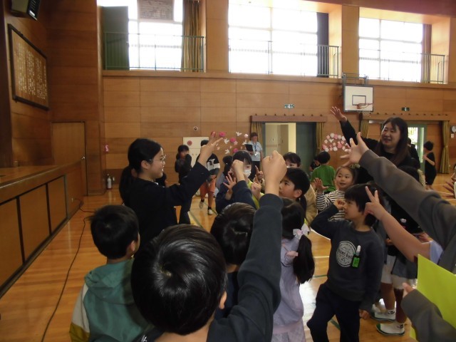 上級生の温かい歓迎に、1年生も安心した様子。最後には、お礼の気持ちを込めて、歌と踊りを披露してくれました。これからも、全校児童が家族のように支え合い、1年生がのびのびと過ごせる学校をつくっていきます。