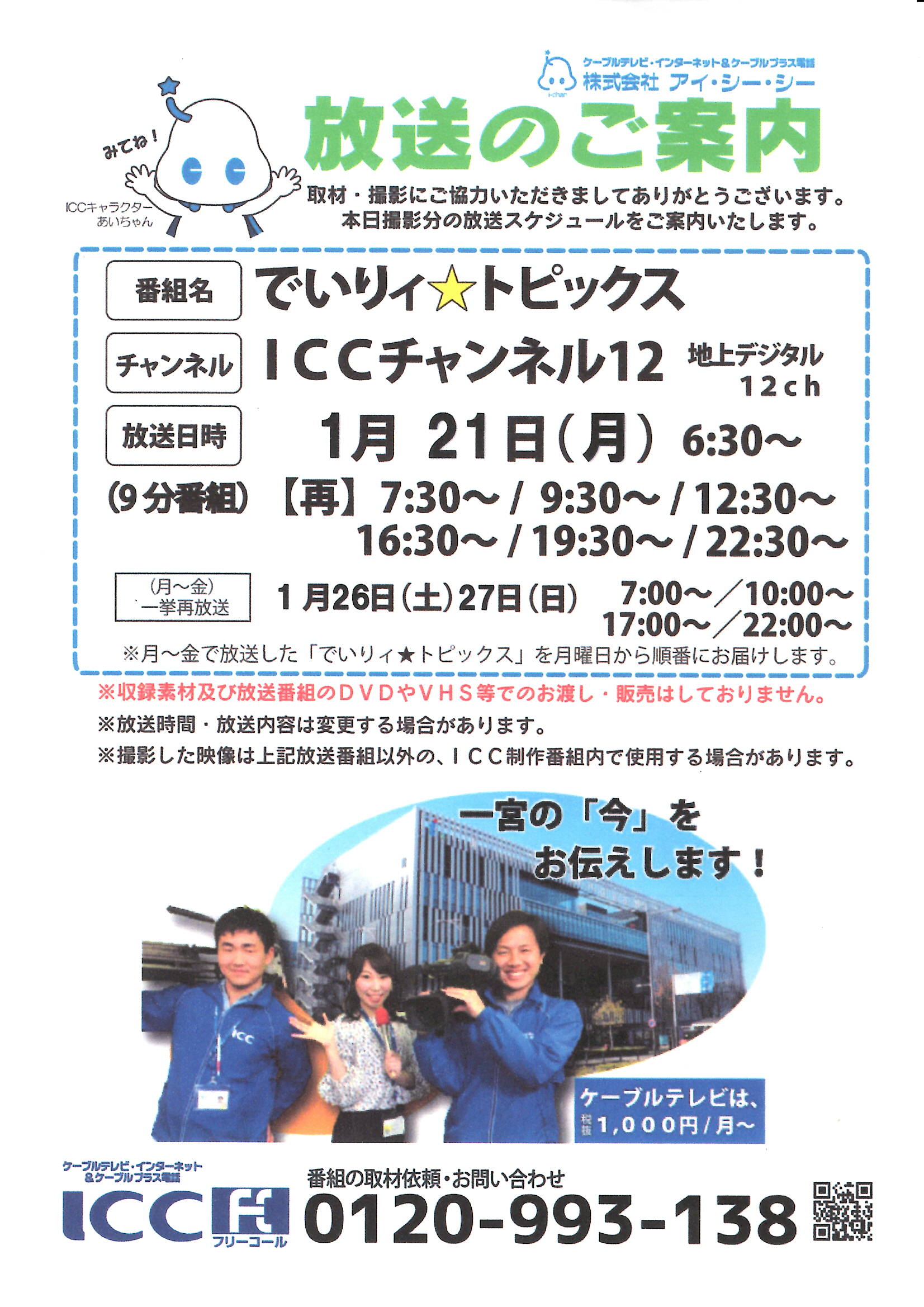 ◇チャンネル「ICCチャンネル12」地上デジタル12ch