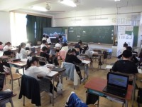 音楽の時間に「ソーラン節」を、太鼓を叩く子とリコーダーを吹く子に分かれて演奏しました。歌う場面では、元気な歌声が音楽室に響きました。音楽を楽しんでいました。