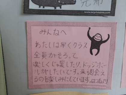 貼られたメッセージを読むと、クラスの仲のよさや、友達に会いたかったという気持ちがあふれている素敵なクラスだと感じることができました。
