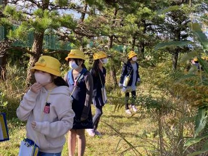 今日は理科の授業で秋の動植物を観察しました。以前は夏の終わりの動植物を観察して動物が活発に動いたり、葉が生い茂っている植物がたくさんあったりしたことを思い出し、それがどのように変化したのかを実際に観察へ出かけました。
