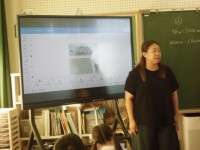 今日は、ジャムボードというのをやってみました。みんなの名前をパソコンの中の付箋に書いて、動かしてみました。