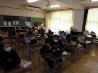 グループに分かれて、鍵盤ハーモニカを1曲ずつ演奏し、みんなで「春が来た」を合唱しました。
