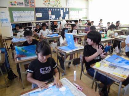 そして5時間目には、「立ち上がった絵の世界」を完成させました。立体的に絵をはるのに、いろいろと工夫をしていました。出来上がった作品は、教室と、多目的室に飾ってあるので、明日の公開の時間に、ぜひご覧ください。