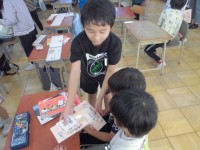 3時間目に、2年生が学校を案内してくれました。初めに2年生からアサガオの種をプレゼントしてもらいました。その後、どんな教室があるか、一緒に見て、スタンプを押しながら回りました。頼りになる2年生が一緒なので、1年生も安心してついていくことができました。今度は、1年生だけで学校探検をします。楽しみですね!