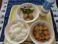 牛乳・ご飯・てりやきハンバーグ・切干だいこんのごま酢和え・豚汁