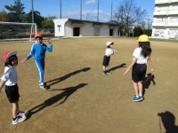 今日は、的を作り、的に当てるためにどう言う投げ方をしたら当たるのか試行錯誤をしながら行っていました。