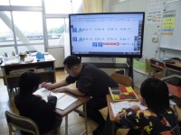 5年生は社会の勉強で広告から国産のものなのか、海外産のものなのかを選んで貼っていました。