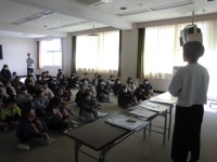 今日の英語の授業は、町の施設の道案内の練習をしました。教室の机を、町の区画に見...