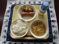 〇 今日の献立 牛乳・ご飯・豆腐の肉みそがけ・いろどり炒め・きのこのすまし汁〇 ...