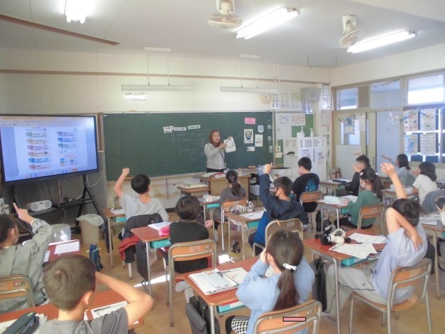 今日の英語の時間は、野菜や果物の単数形(一つ)と複数形(二つ以上)の学習をし...