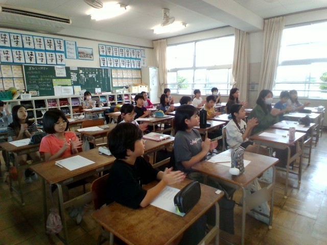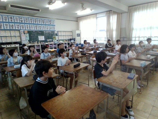 今日は、応援団がクラスにきてくれました。応援の仕方を確認しました。大きな声で応援合戦ができるように練習中です。