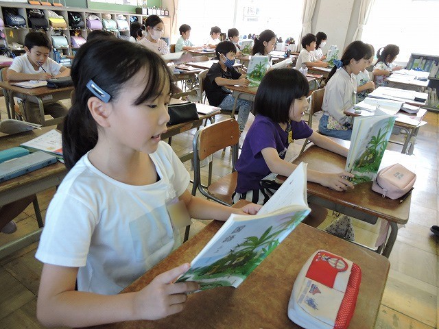金子みすゞさんの「わたしと小鳥とすずと」をみんなで音読しました。よい姿勢だとよい声が出ますね。宿題の音読も姿勢に気をつけて練習するとよい声で上手に読めるようになりますよ。