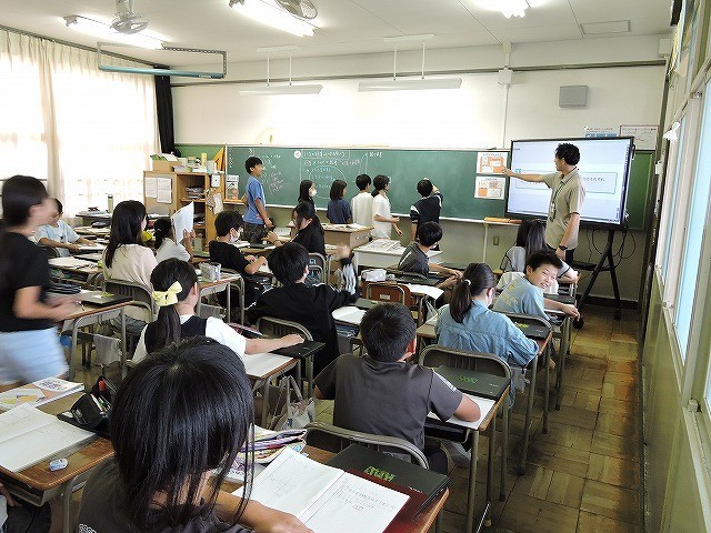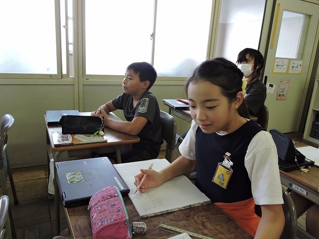 5年生2クラスとも算数の学習で問題を解いたり、意見を発表したりして真剣に取り組んでいました。